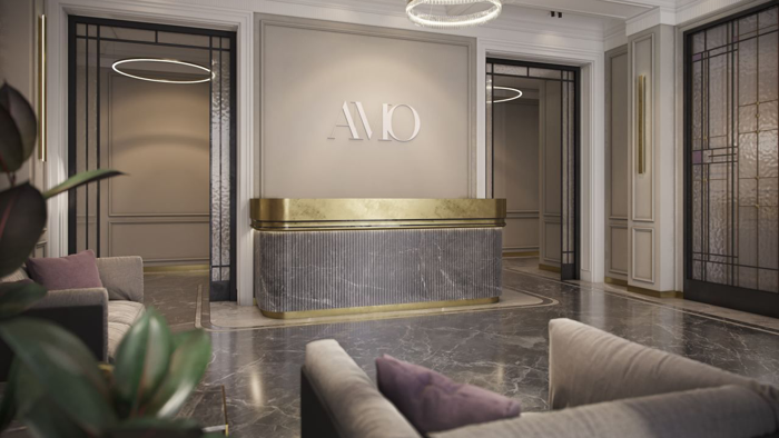 Центральная входная группа включает лобби с зоной ожидания и стойкой консьержа для жильцов и гостей в холле первого этажа секций А и В, общей площадью более 85 м2